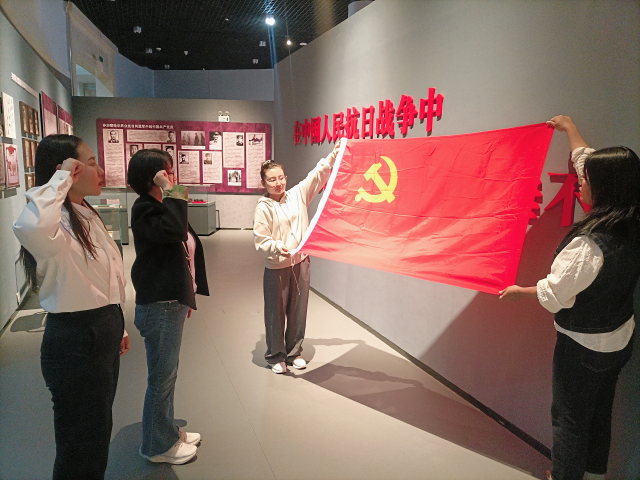 观展尾声,在展厅内庄严肃穆的党旗下,预备党员进行入党宣誓。“我志愿加入中国共产党,拥护党的纲领,遵守党的章程……”铿锵有力的誓言回荡在展厅,与展陈中先烈们的抗争精神交相辉映。预备党员眼神坚定、神情庄重,用誓言表达着对党的无限忠诚和为共产主义事业奋斗终身的决心。