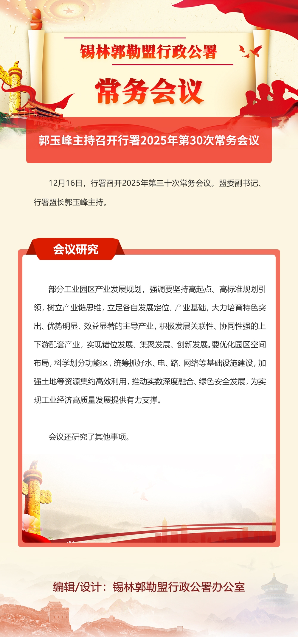 图解:郭玉峰主持召开行署2025年第30次常务会议