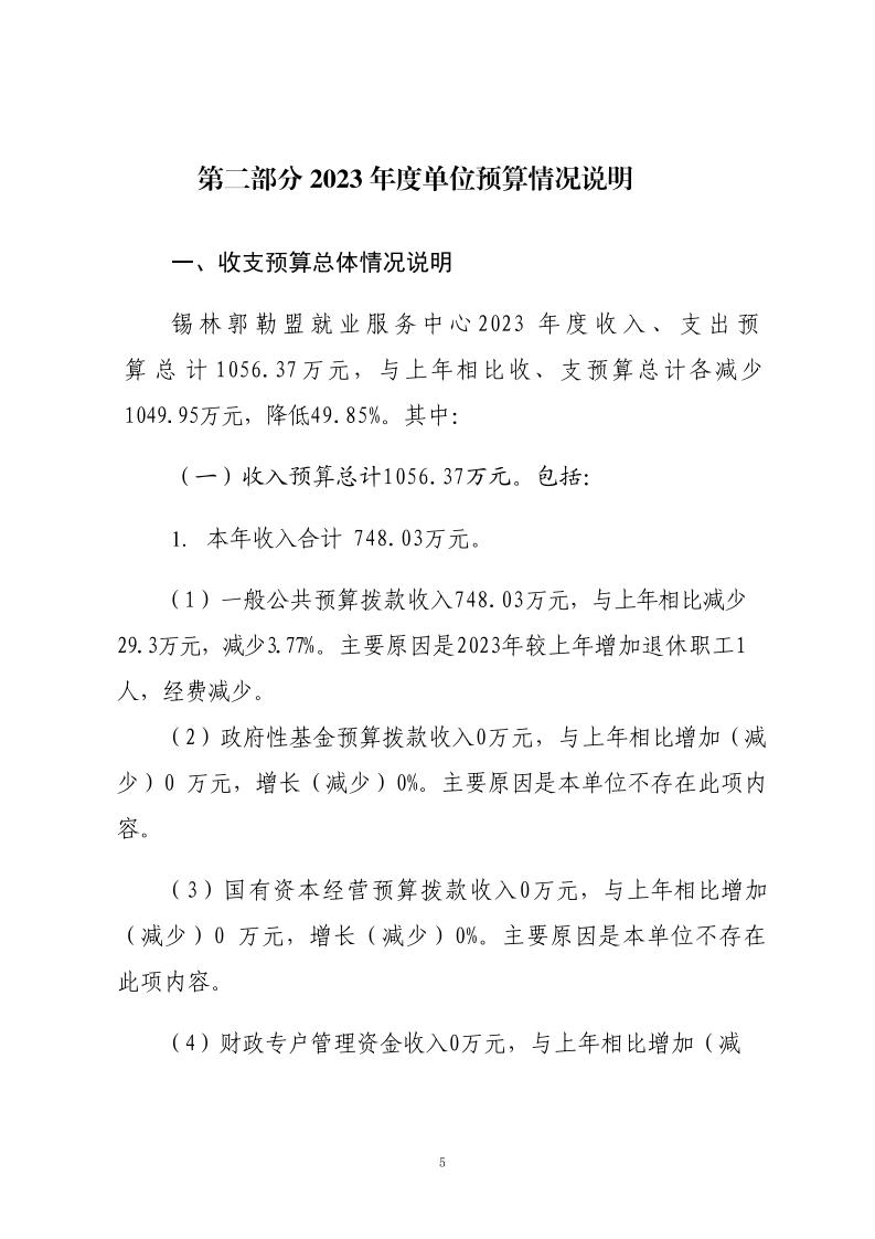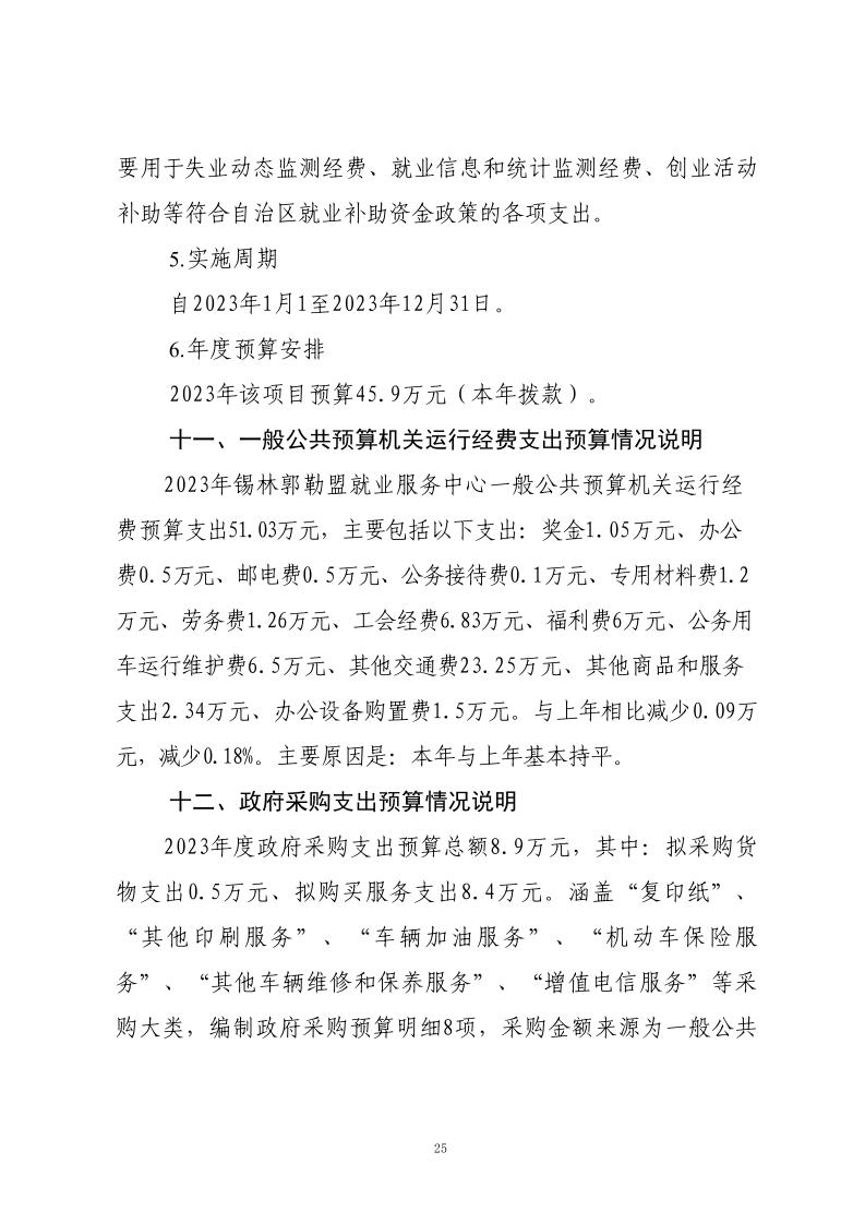 2023年度锡林郭勒盟就业服务中心预算公开