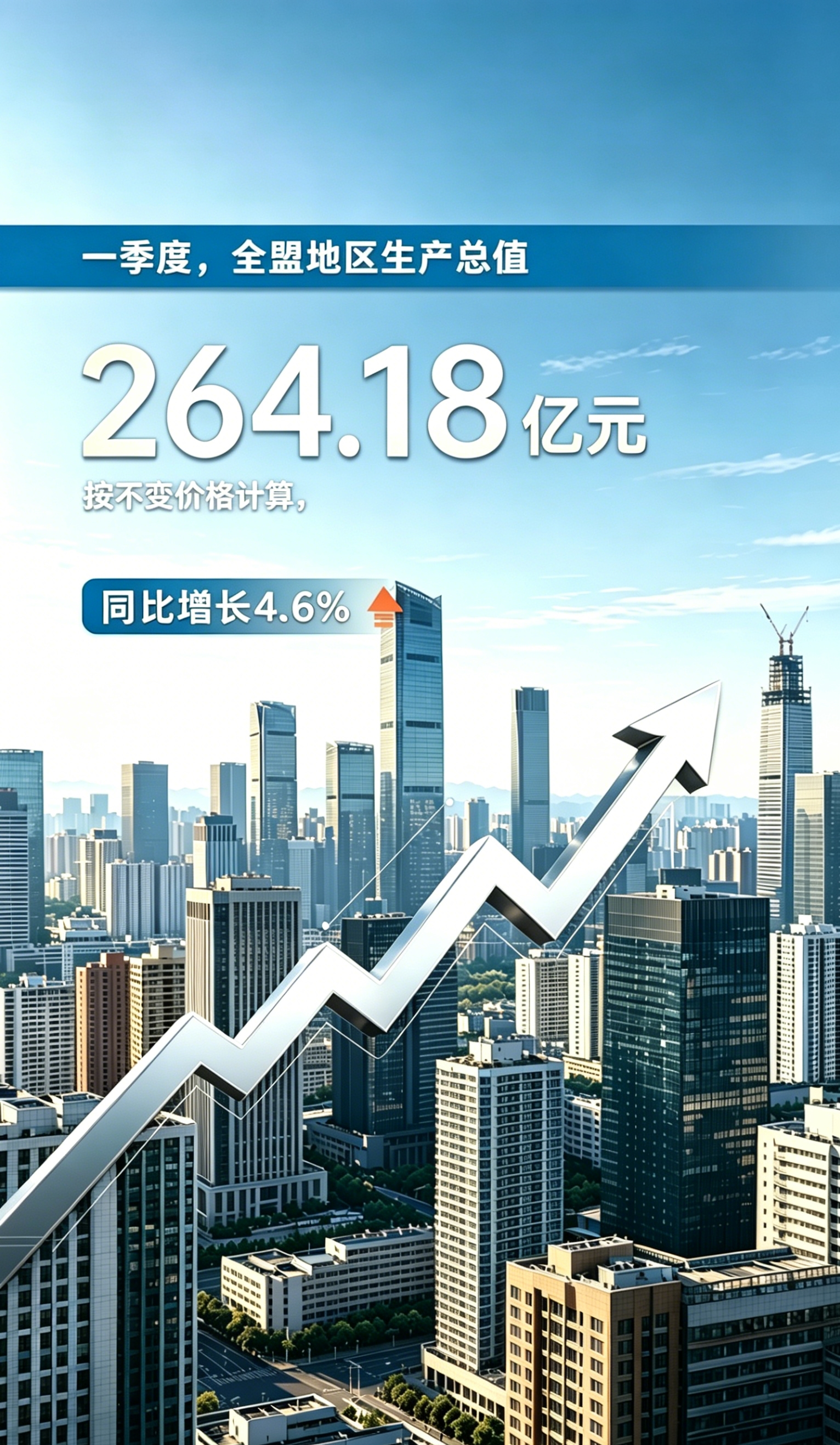 经济增长稳中有进,第二产业贡献突出。根据盟市生产总值统一核算结果,一季度全盟地区生产总值264.18亿元,按不变价格计算,同比增长4.6%。其中,第二产业增加值实现132.86亿元,增长5.7%,对全盟经济增长的贡献率达到63.8%。