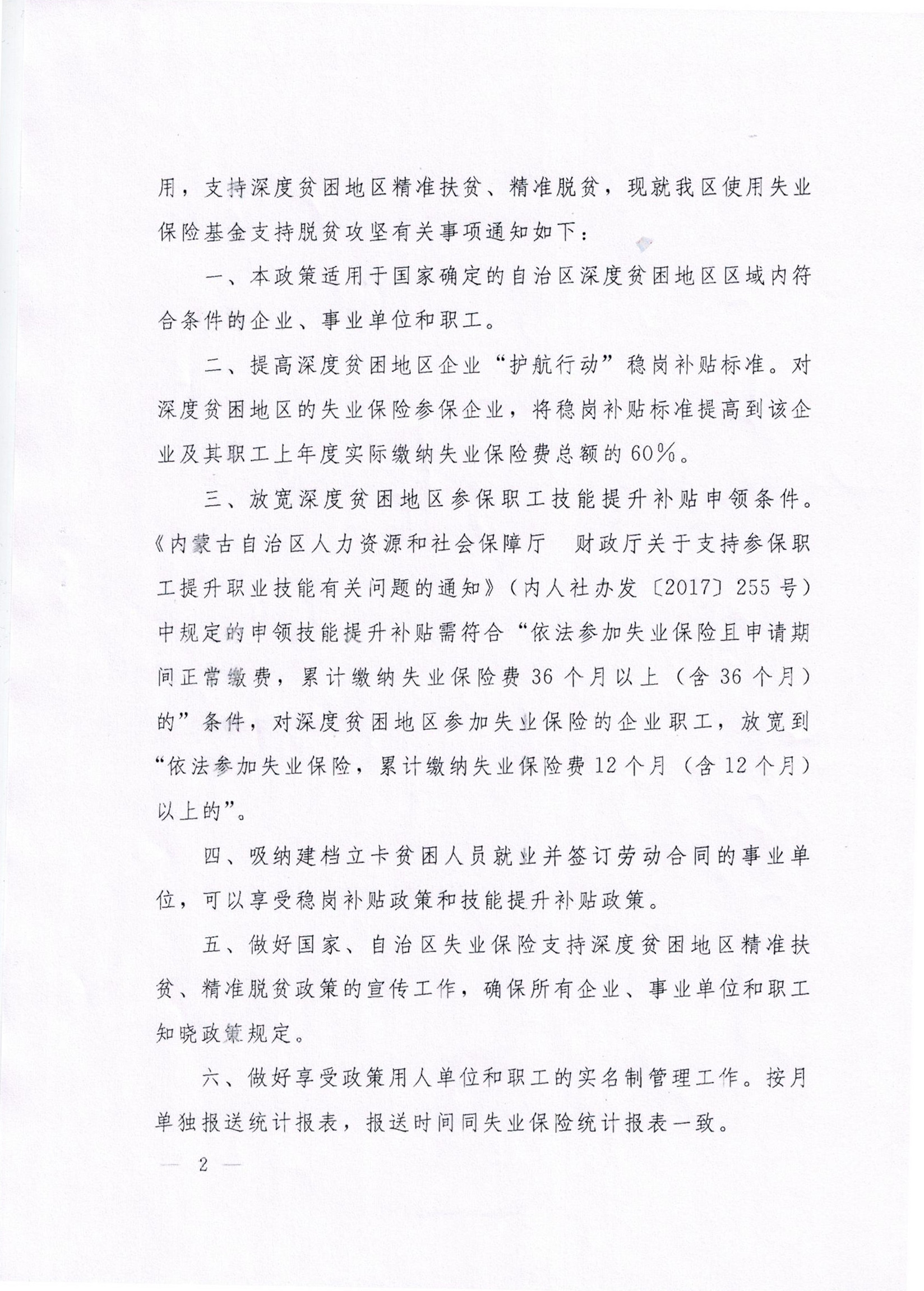 转发关于使用失业保险基金支持脱贫攻坚的通知