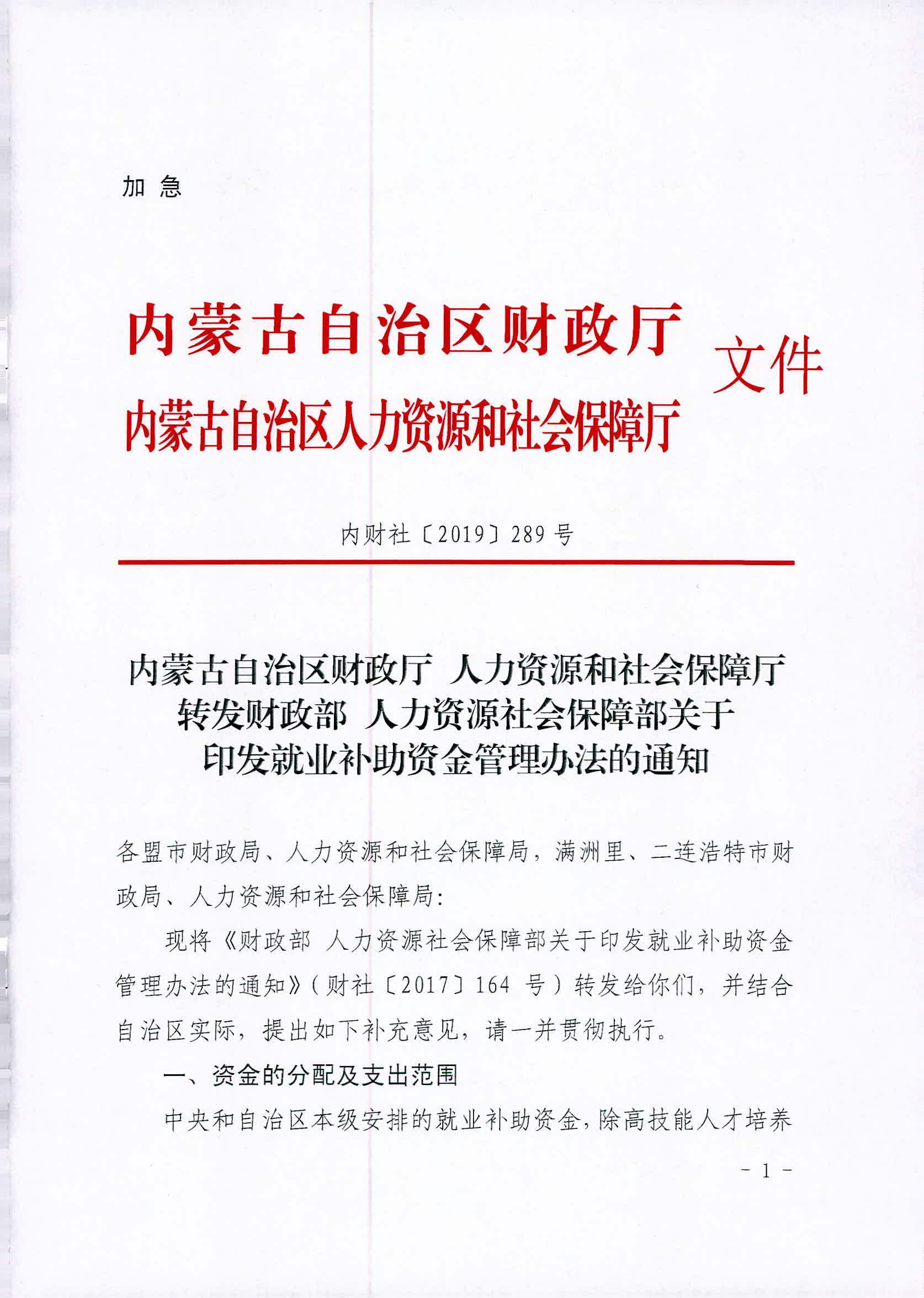内蒙古自治区财政厅 人力资源和社会保障厅转发财政部 人力资源社会保障部关于印发就业补助资金管理办法的通知