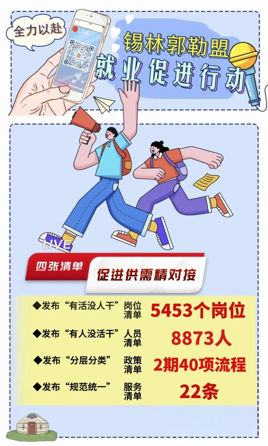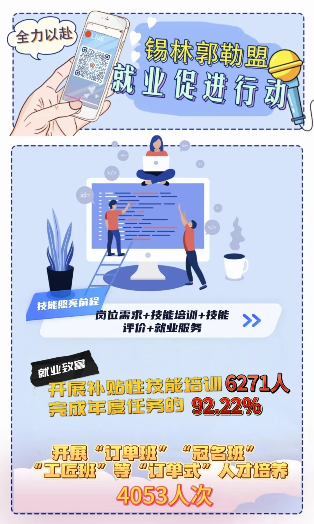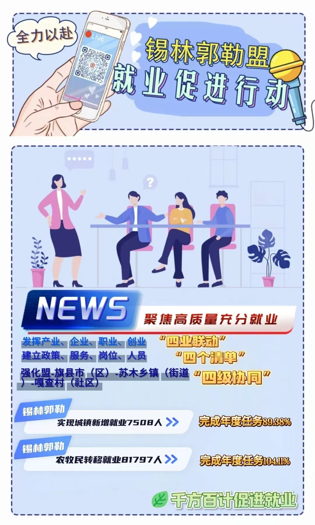 今年以来,锡林郭勒盟人社局聚焦自治区办好“两件大事”、实施“六个工程”、开展“六个行动”,以落实就业促进行动为牵引,加强政策研究、强化统筹调度、细化工作举措,精心部署任务表、合力绘制路线图,全力以赴构建起组织体系纵向贯通、部门合力横向联动、全域全链融合协调的运行机制,人社部门牵头抓总推动部门间统筹协作,各成员单位发挥行业部门主体作用履职尽责,全社会广泛关注的高质量充分就业格局基本形成,各项工作有力有序推进落实,主要指标实现“时间过半、完成过半”,部分指标提前完成年度任务,各项指标走在全区前列。