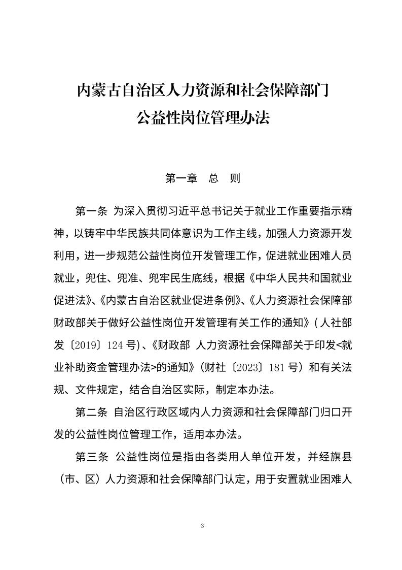 关于印发《内蒙古自治区人力资源和社会保障部门公益性岗位管理办法》的通知